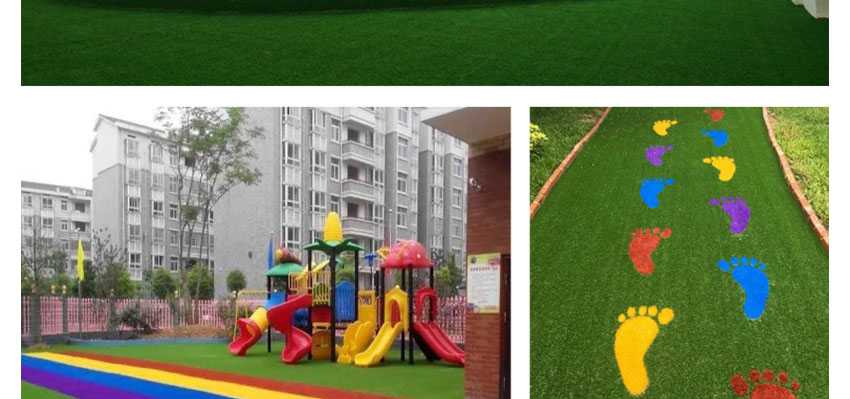 ● 缤纷色彩 柔软质感 亲和设计 ● 草丝类型:单曲同孔 ● 草高:25mm ● 密度:16800针/M2 ● 颜色:红黄蓝紫,(多种搭配,多种选择) |